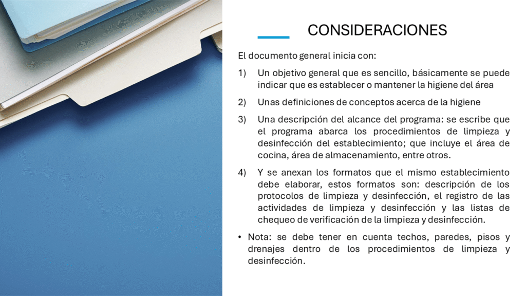 CONSIDERACIONES PARA IMPLEMENTAR UN PROGRAMA DE LIMPIEZA Y DESINFECCIÓN