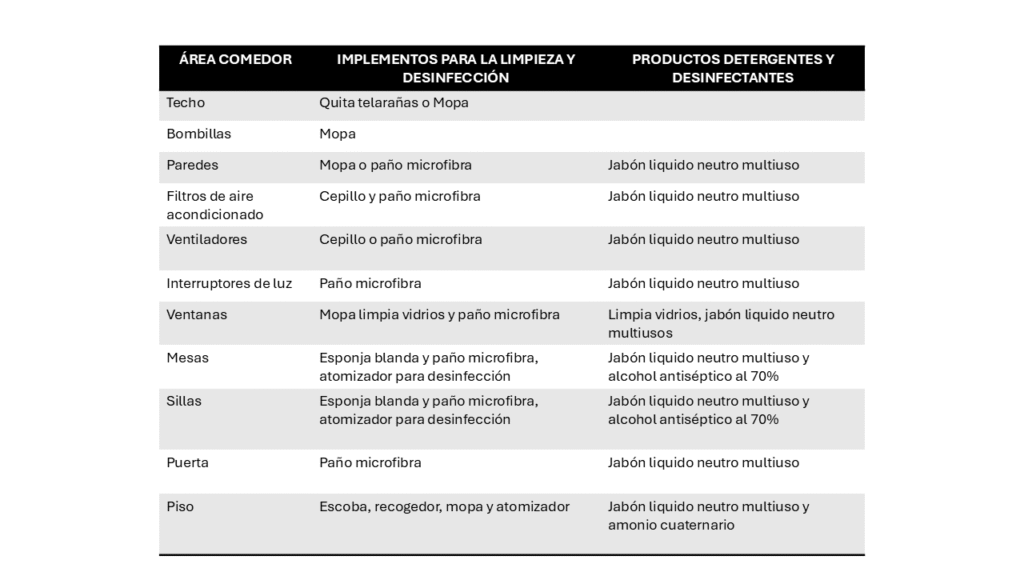 FORMATO DE DESCRIPCIÓN DE PRODUCTOS DE LIMPIEZA Y DESINFECCIÓN PARA EL ÁREA DE COMEDOR DE UN RESTAURANTE