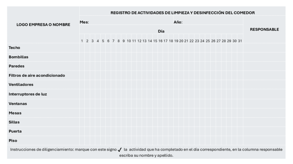 FORMATO DE REGISTRO DE ACTIVIDADES DE LIMPIEZA Y DESINFECCIÓN DEL ÁREA DE COMEDOR DE UN RESTAURANTE